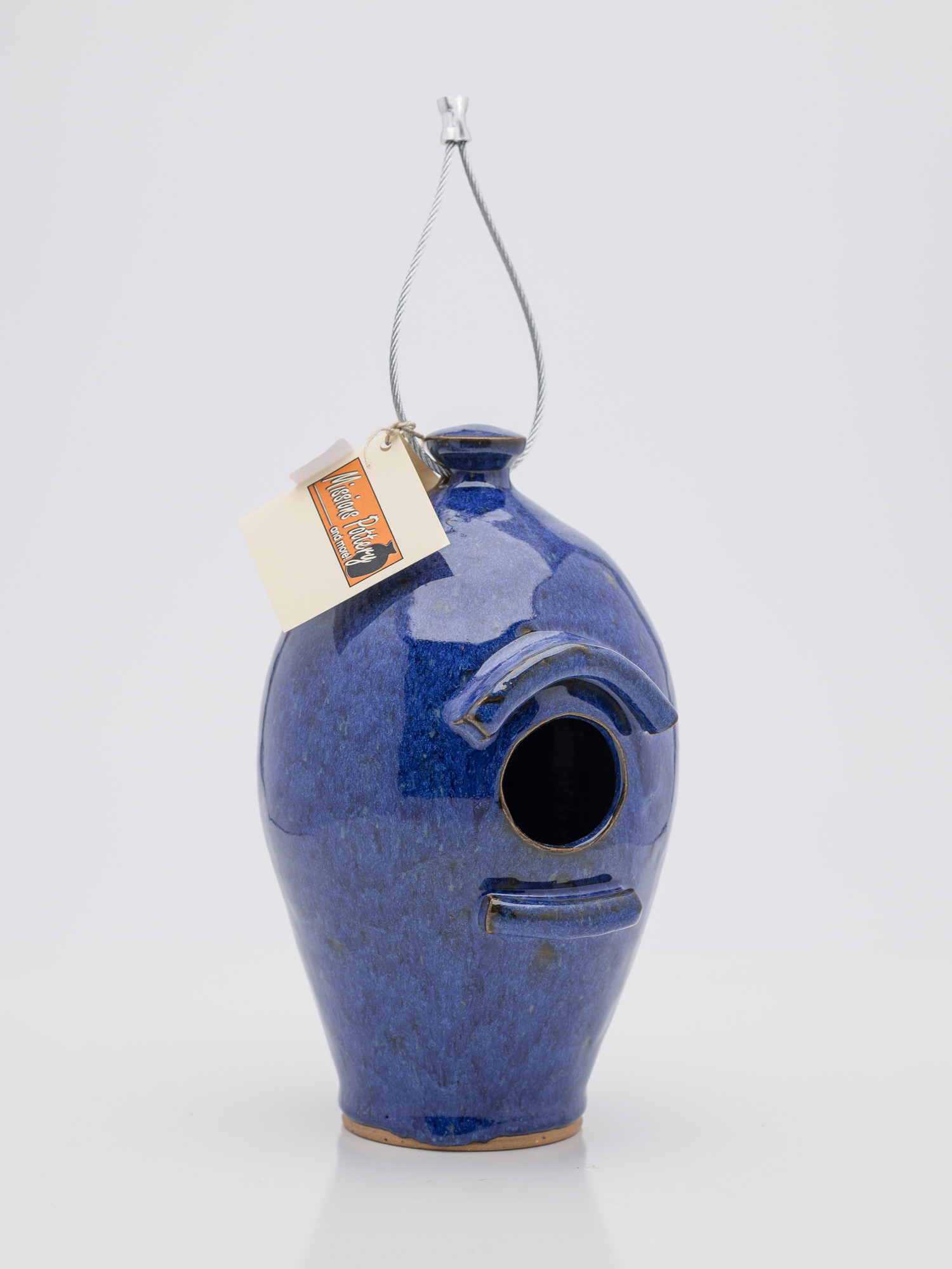 Attract birds to these beautiful one bedroom hanging villas made of clay and fired to create a colorful piece to house your feathered outdoor friends. Please hang in the shade these house retain heat.