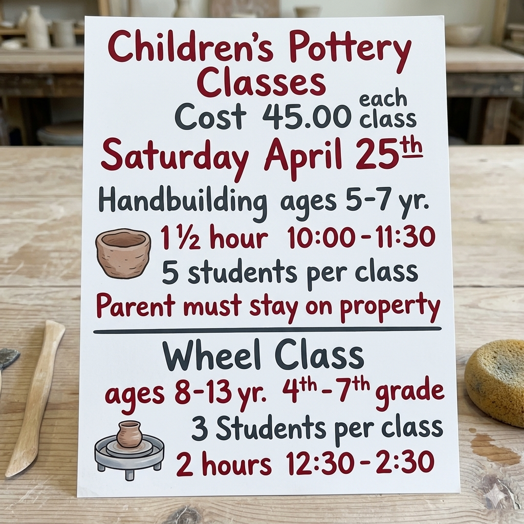 Secure your place in our popular pottery classes! To reserve your spot, please give us a call or visit us in store.